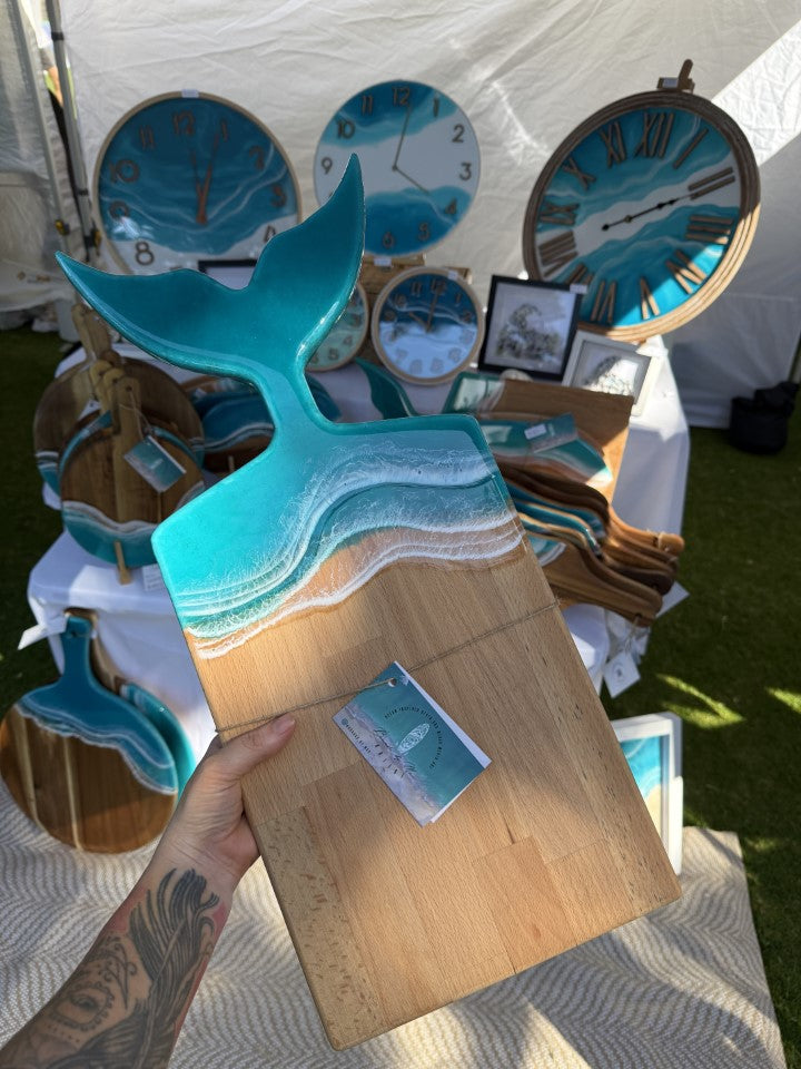Channel beach vibes at home with our handcrafted Whale Tail Resin and Wood Serving Board. With ocean-inspired resin and natural timber grain, it’s made for grazing, gifting or just bringing a hit of coastal cool to your table.